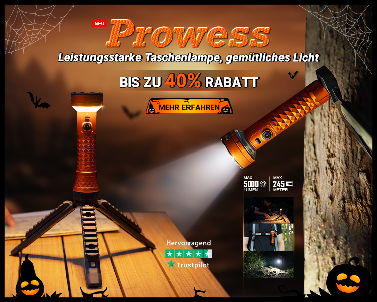Die Prowess verfügt über innovatives bidirektionales Licht. Das Licht lässt sich ganz einfach mit einem Modusschalter zwischen Flutlicht und Laternenmodus umschalten. Mit ihren Hochleistungs-LEDs für das Frontlicht liefert sie eine beeindruckende maximale Lichtleistung von 5000 Lumen und wirft einen kaltweißen Lichtstrahl bis zu 245 Meter weit. Das warmweiße Licht auf der Unterseite des Lampenkopfes bietet eine stufenloseHelligkeitseinstellung, um verschiedeneBeleuchtungsbedürfnisse zu erfüllen.