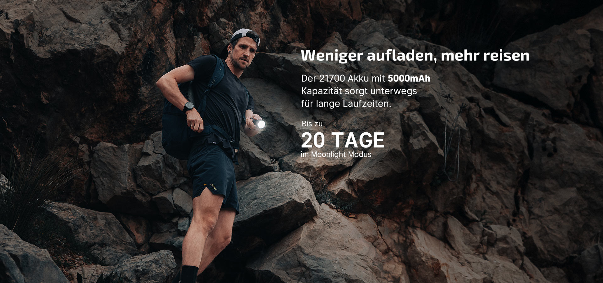 Die Prowess wird von einem robusten 5000mAh Lithiumionenakku angetrieben und verfügt über eine beeindruckende Laufzeit, die die der Konkurrenz in den Schatten stellt. Mit bis zu 20 Tagen Dauerbetrieb im Moonlight Modus kannst du sicher sein, dass sie so lange wie nötig leuchtet. Egal, ob du einen Wochenend-Campingausflug unternimmst, einen Stromausfall zu Hause überbrückst oder an einem längeren Projekt arbeitest - die Prowess sorgt dafür, dass du nie im Dunkeln stehst. Die lange Akkulaufzeit sorgt für Sicherheit und Zuverlässigkeit, sodass du dich auf deine Aufgabe konzentrieren kannst, ohne dir Gedanken machen zu müssen, dass dir der Strom ausgeht.