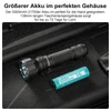 • Akku mit großer Kapazität: Mit dem 5000mAh 21700 Akku leuchtet die Taschenlampe im Moonlight Modus 72 Tage lang ununterbrochen und sie lässt sich mit einem Handgriff auch direkt im Holster wieder aufladen.
